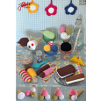 Restegarn av flg farger: Blå, rosa, gul, hvit og grønn (strøssel på iskulene), rødt og brunt (prikkene på kroneisen)