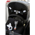 TILBEHØR Fyll, kraftig rund elastikk (ca. 50 cm per barnevognlenke), rangleboks til rangler, klips til barnevognoppheng