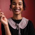 En elegant krage med icord-kant. Dekorert med popcorn og