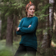 En genser med kroppsnær passform som fungerer like bra som et varmende lag innerst så vel som et ytterplagg. Fletten som følger ermene og går videre inn i sadelskuldrene, gir genseren et sporty look. Plagget strikkes i ett stykke og rammes inn av i-cordavslutninger. Bergtjärn ligger i Sveafallen, et naturreservat i Degerfors.