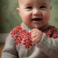 Denne lille genseren strikkes i det mykeste jak-garnet med et nett lite bærestykke i avvikende farge. Genseren strikkes ovenfra og ned med forkortede pinne for å gjøre den høyere bak. Ermene strikkes rett ned.
