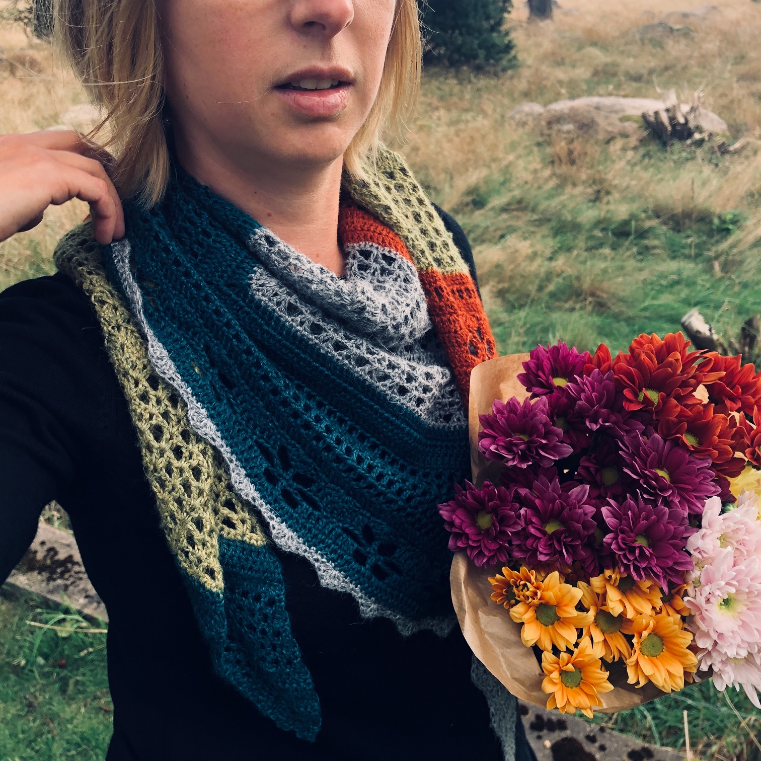 Når du har festet de siste trådendene så er sjalet ditt ferdig til blokking.