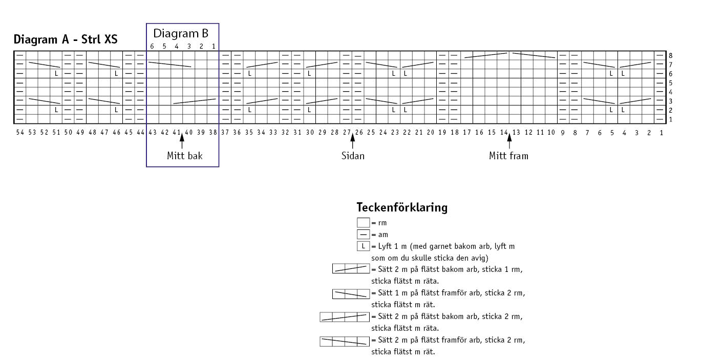 OBS! Korrigering på diagram A strl XL: Mitt bak flyttad till mellan m 52 och 53 (kl 14.30)