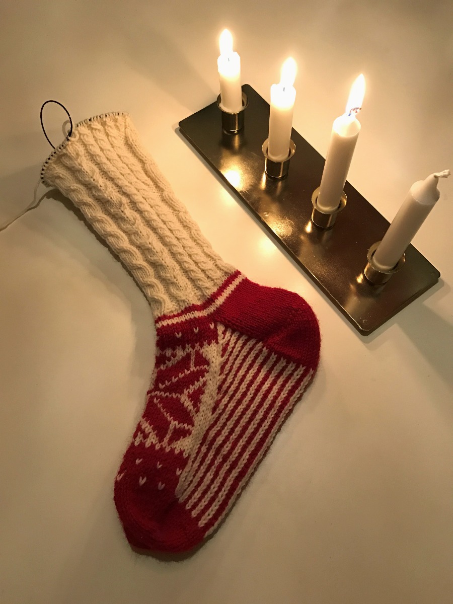 Tredje lyset tennes og nå skal vi strikke rundt opp til skaftet på #adventsstrømpen! Velkommen til morsom og kreativ flettestrikk!