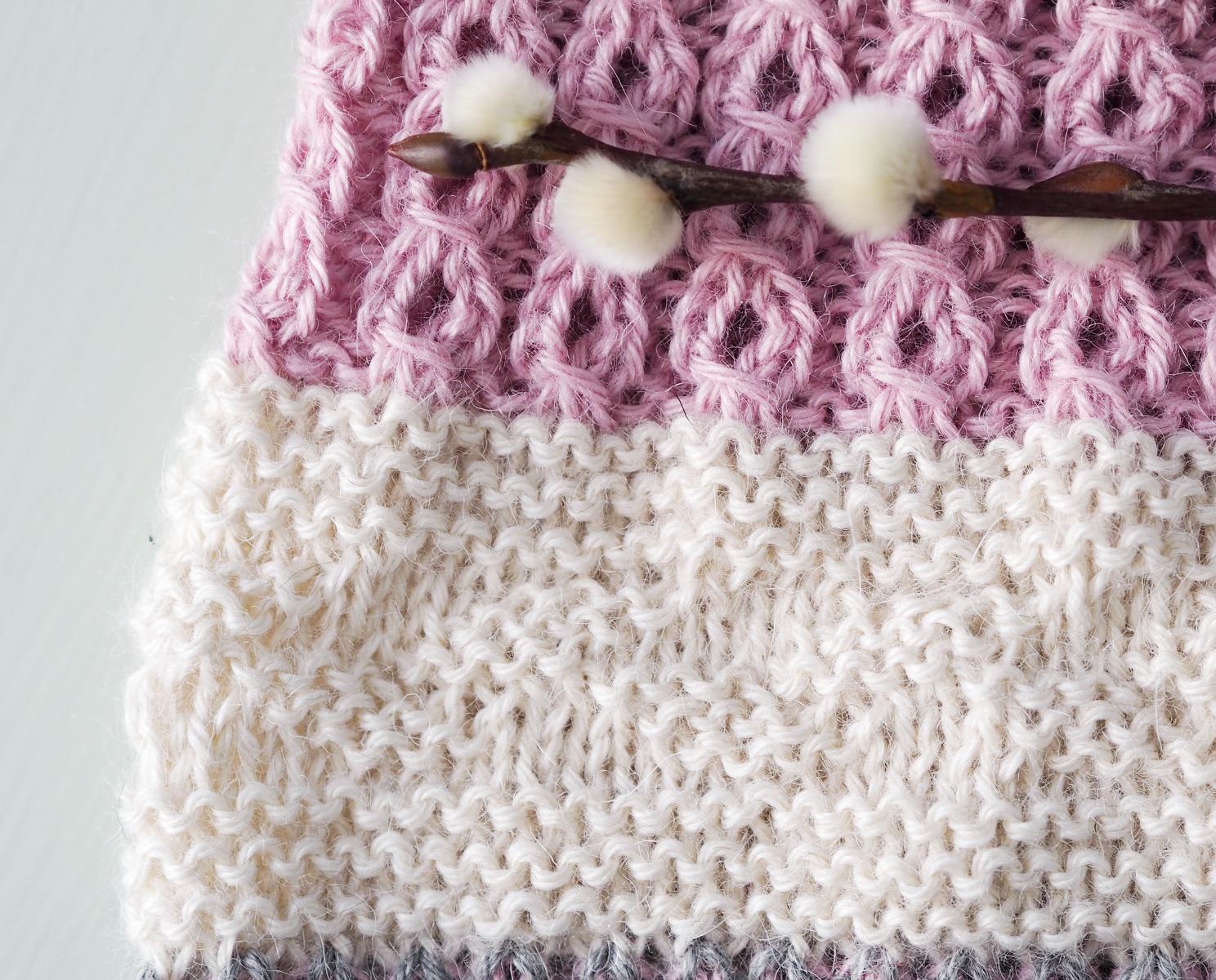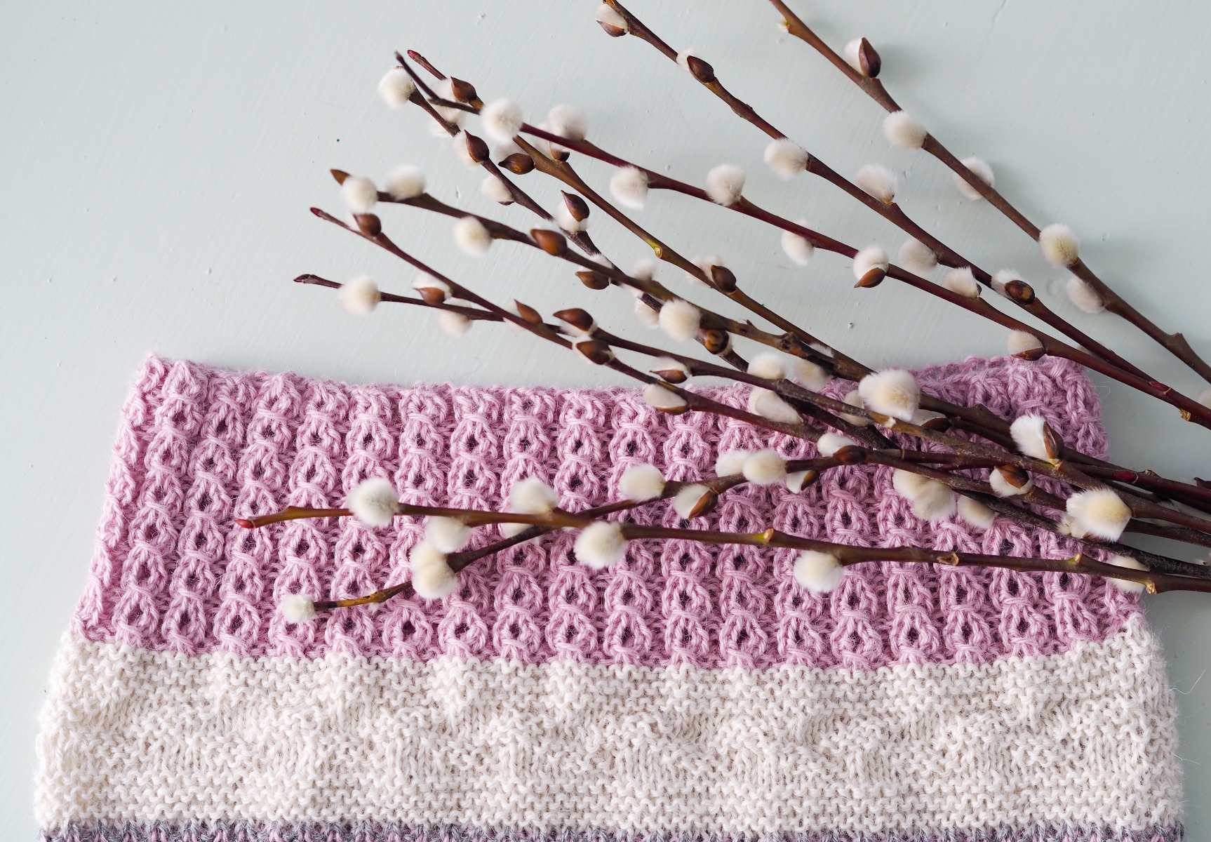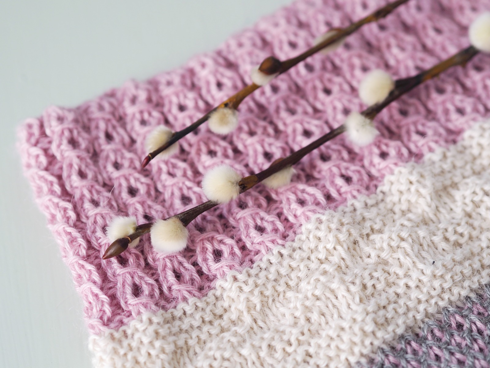 Om mønsteret i del 2: Rette og vrange masker danner et strukturmønster i form av en seljekvist.