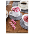 Tett heklede glassbrikker med fast og glatt overflate som får glass og mugger til å stå stødig! Brikkene hekles med fastmasker der økningene spres ut så de blir usynlige. Til slutt avsluttes det med en dekorativ kant av sammenheklede staver. Skap litt hverdagsluksus og hekle dine egne glassbrikker i ren lin eller hekle i det rimelige bomullsgarnet Järbo 8/4.