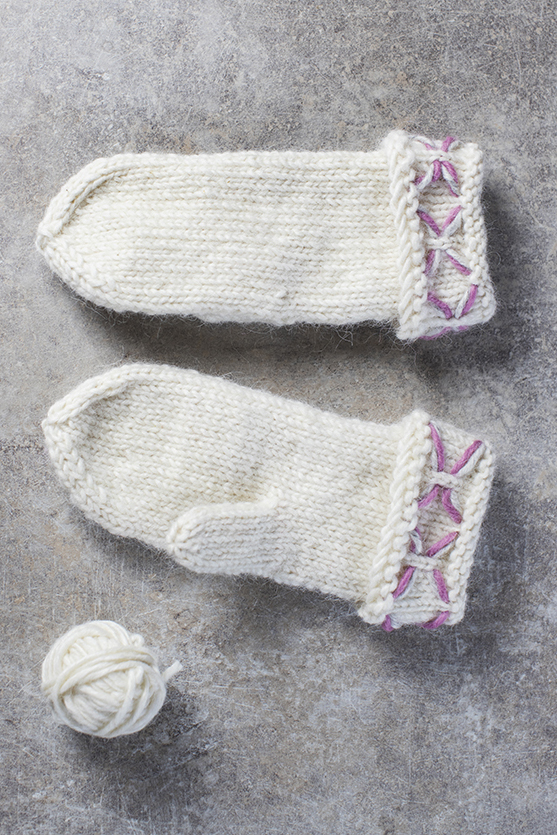 Lovikka-votten er en klassisk strikkevott preget av det varme, tykke ullgarnet den er strikket i og den spesielle mansjetten med enkel broderi.