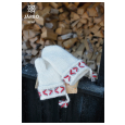 TILBEHØR Restegarn i rødt og lys grått til broderiene, ullnål, garnrest i avvikende farge til tommelen.