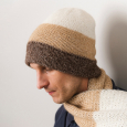 Dette er luen du kan snu og vende på og endre uttrykk etter humør. Den ene siden er ensfarget og den andre siden har blokkstriper. Perfekt hvis du vil ha en ekstra varm og koselig lue uten å bruke dobbeltstrikk som teknikk. Oppskriften er skrevet for strikking med Magic Loop-teknikken, men det går like bra å strikke den med en kortere rundpinne og strømpepinner. Bare husk å feste trådene etter hvert, siden det til slutt bare er et lite hull igjen øverst.