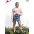 Rundstrikket genser med feminint boblemønster på bærestykket. Genseren er strikket ovenfra og ned i myke Llama Soft og i delikat rosa pastell.