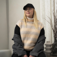 En deilig, kort vest, perfekt å kose seg i når vinteren kommer. Vesten strikkes nedenfra og opp i dobbelt garn med brede striper. Alt avsluttes med en polokrage som kronen på verket.