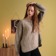 En herlig oversize genser med høy splitt i siden. Genseren strikkes nedenfra og opp med et vakkert strukturmønster på bolen. Genseren har rund hals med knepping, og ermene strikkes ovenfra og ned i glattstrikk med vrangbord nederst.