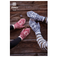 Mønsteret har fått namnet sirupsnipp, då forma som åttebladrosa er plassert i har liknande form som den norske tradisjonelle kaka «Sirupsnipp». Opphavleg var mønsteret inspirert av tommelmønsteret på ein selbuvott eg strikka, og den sirupsnippliknande forma vart utslagsgivande for designprosessen. Åttebladrosene kan få heilt ulikt uttrykk alt etter kva form dei er plassert i, og i kva samanheng. Her er det laga tell - eller granbar - både i rosa og rundt hovudmotivet. Dette gir eit spanande uttrykk i komposisjonen, samt at mønsteret trer fram ulikt om det er plassert i lengda, som på sokkane, eller i breidda, som på halsen og lua. Det kan også vere hovudmotiv som på vottane. Dette mønsteret er typisk for måten eg arbeider på, der ein mønsteridé kan varierast over mange ulike snitt og idear.