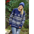 Stjärnmix - mønsterstrikket genser med raglan og lue til dame